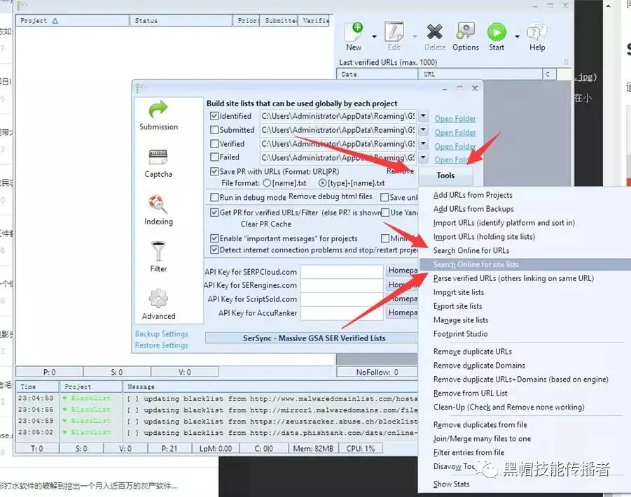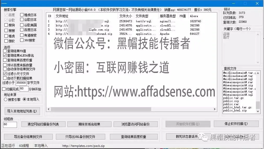 这里我有3种方法,一种就是谷歌搜索引擎搜索,当然,你也可以BING,YAHOO等等,有这样的软件,可以批量实现。