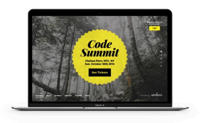 Evolero 和其他的网站搭建平台略有不同,它是专门用来创建活动类网站的平台。虽然从广度上和其他的无法相比,但是在深度上可谓是无与伦比:它几乎是一站式的活动类网站创建工具,无论是事件管理还是从B端到C端的管理,从售票到社区建设,它拥有完备的服务和功能模块,不论你是企业活动还是非盈利组织的酒会,它都能完美的帮你搞定网站设计。