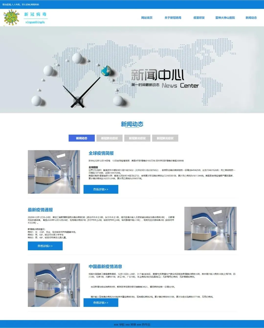 新冠肺炎网页,风景网页。使用HTML5+CSS3+JQuery制作,纯页面。