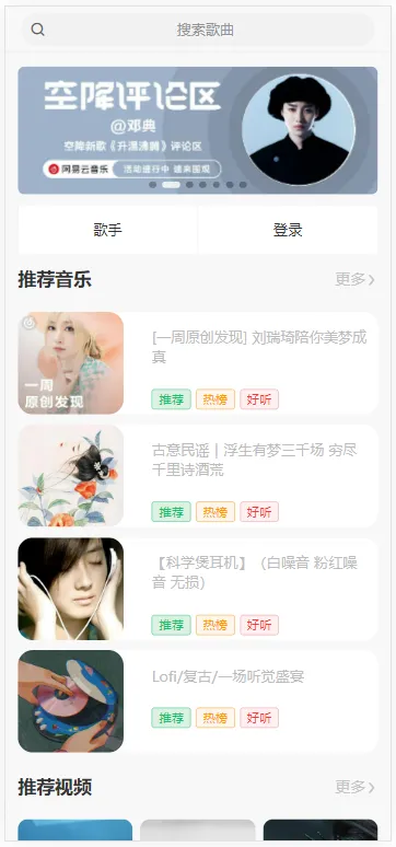 音乐小程序/app,使用uniapp+网易云开放接口制作,功能完整。