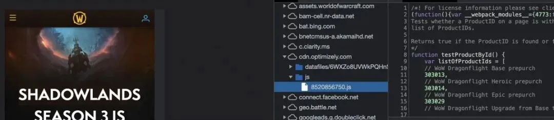 愚人节和清明假期结束了,在官网的扩展线程中我们可以注意到,在源代码中有一个Dragonflight扩展的引用。目前还不清楚这是否是官方名称,但dragonflight.blizzard.com的DNS记录已经刷新。这不是偶然发生的事。其实,在60、70、80年代中,Dragonflight就是简简单单巨龙/巨龙军团的名称,Dragonflight前面加上龙类的名称/颜色,即翻译成XX龙或XX龙军团。https://worldofwarcraft.com/en-us/dragonflight不管你在/en-us/后面放什么,只要使用链接就可以了。点击F12(或右键单击)到源,然后ctrl+f搜索cdn。然后复制该url到一个新的标签,并按ctrl+f 搜索Dragonflight,你会找到它。