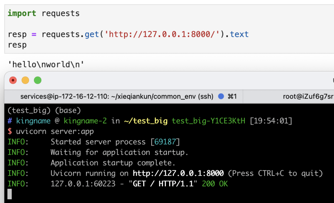 然后使用命令uvicorn server:app启动这个服务。