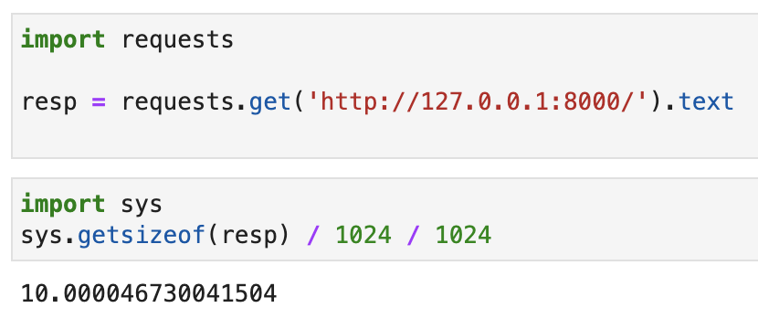 现在我们用requests去请求这个接口,然后查看一下resp这个对象占用的内存大小:
