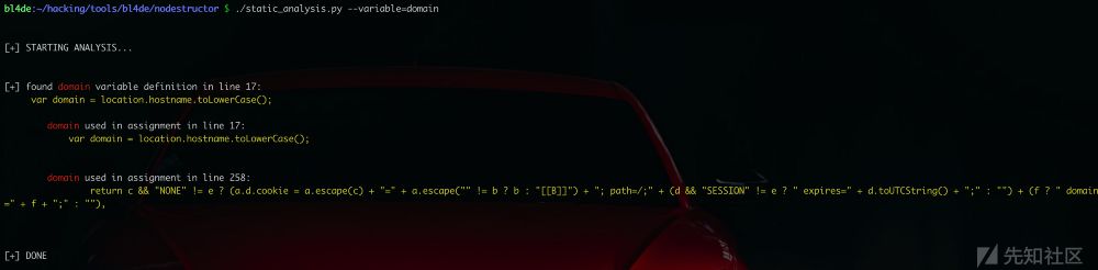 我想进一步来挖掘更多的漏洞,所以不久前,我已经开始用我的工具去做这样的事情了--这个是一个简单的JavaScript静态分析工具,所以它没有很花哨的名字。