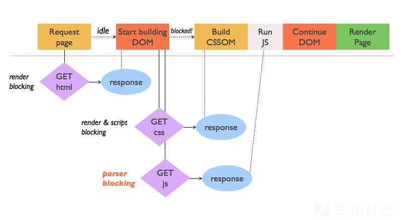 当你在你的浏览器中个打开一个url时,HTML文件首先会被加载进来,然后代码会被浏览器引擎所解析。当浏览器发现<script>或者<style>标签时(或者其他带src属性的标签时,像image 文件或者 video 文件时),它会停止解析HTML并且加载那些文件。如果要执行JavaScript代码时,这些代码也会被马上的执行。