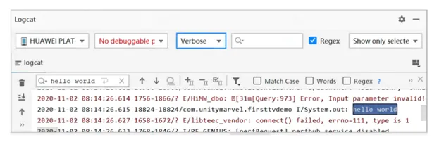 另外一种调试代码的方式就是输出日志,可以直接使用System.out.println(...)的方式将信息输出到LogCat视图中,例如,执行下面的代码,会在LogCat视图中看到如图4所示的信息。System.out.println("hello world");