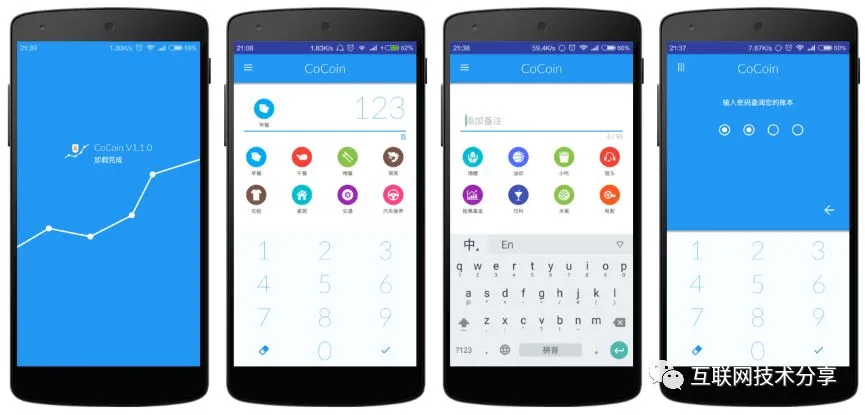 您可以使用CoCoin轻松记账,并使用密码来保护您的账本。账本密码会在您第一次使用CoCoin的时候被设置。在记账的时候,您可以通过左滑显示数字框来为您的记录增加备注。如果您需要查阅账本,可以通过下滑或点击标题栏来进入账本页面。