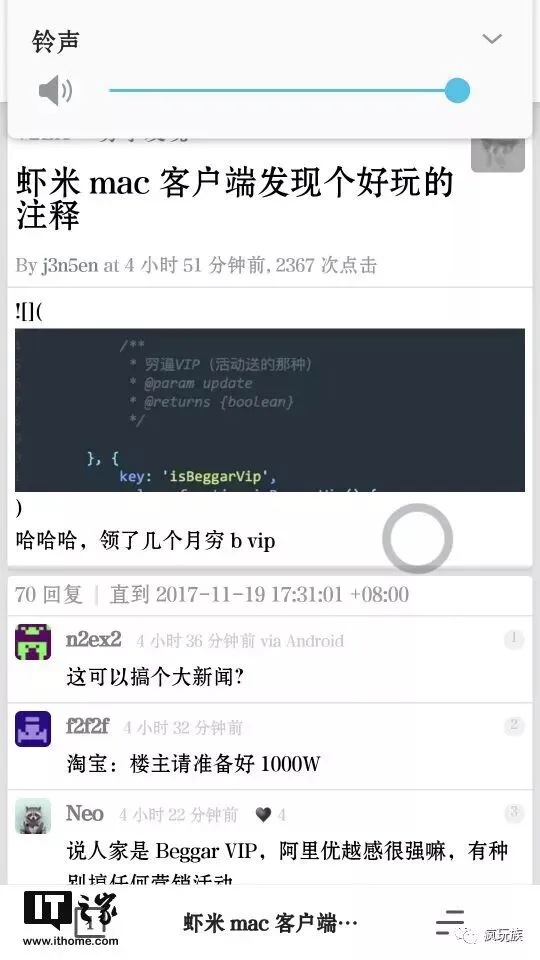 11月19日,有网友发现,虾米音乐Mac版客户端中关于VIP会员代码的注释,上面的图片中出现了所谓的“穷逼VIP(活动送的那种)”。