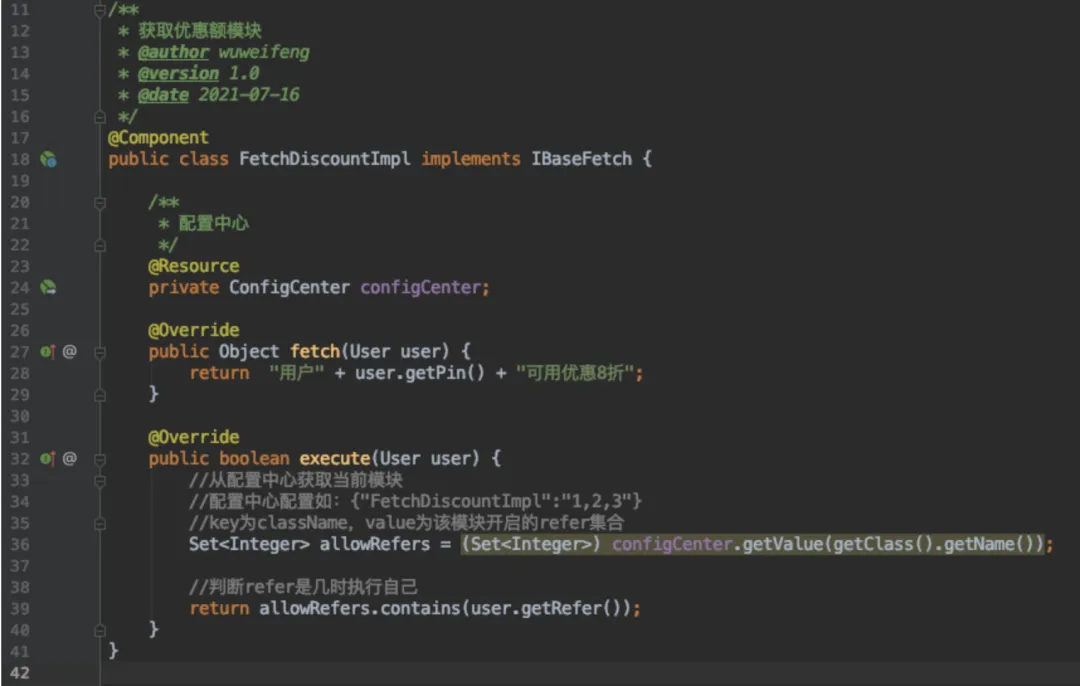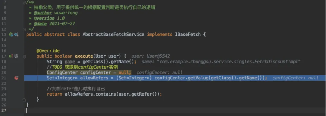 其实很简单,我们只需要修改execute方法,将refer==1这种规则存放于配置中心,将execute方法里的硬编码判断变成根据配置中心的配置进行判断即可。如下图: