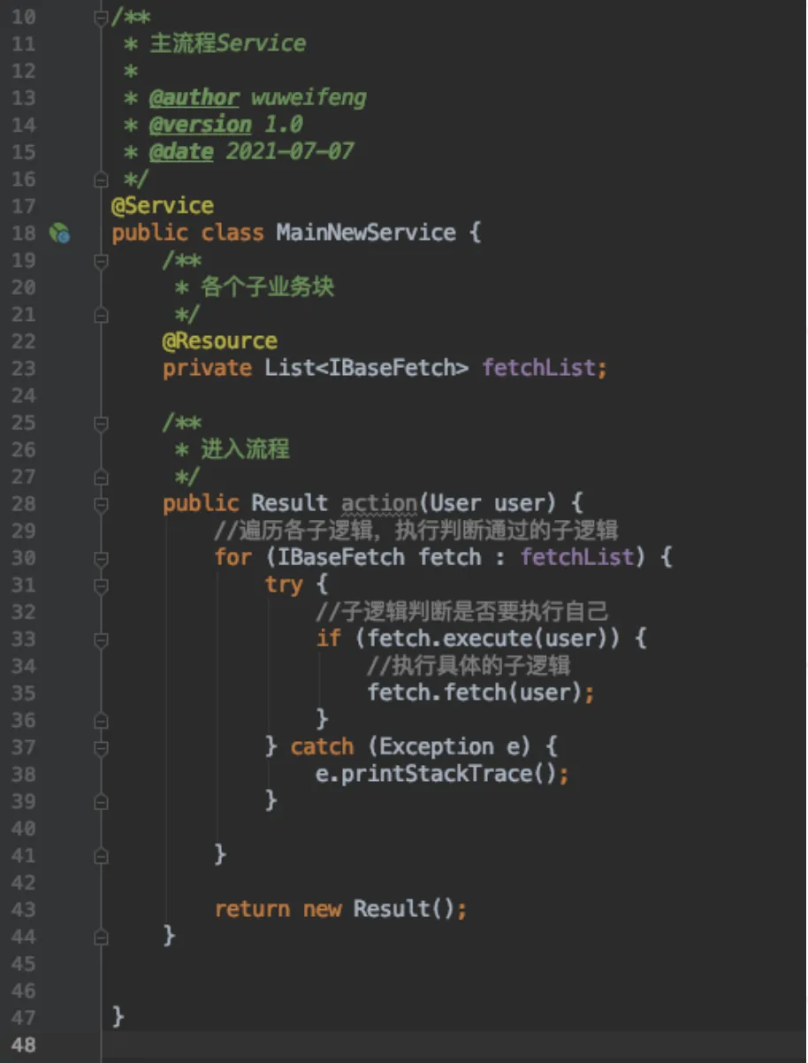 至此,最小业务单元职责则回归到纯粹的业务逻辑,不再参与流程控制的逻辑判断。同理,主流程也不再参与对各个子业务单元的判断和控制,只关注于对接口的遍历,各模块也不再产生相互影响。