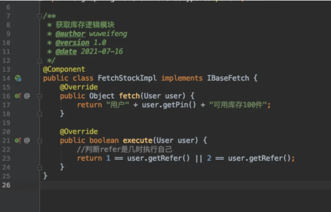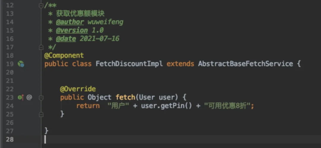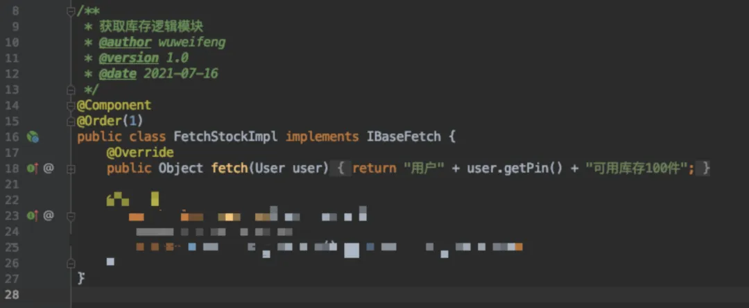 原来的是在一个方法里,fetchStock,fetchDiscount等等,首先我们要把这些实现全部去除,并统一为对接口的遍历。