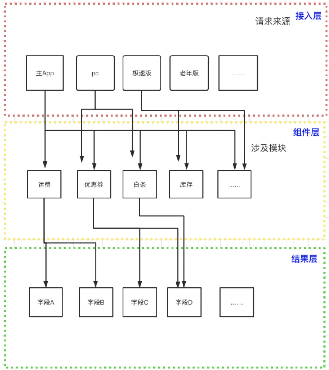 近期京东App后台核心模块发生了较大的逻辑改动,主要原因是新增了一些接入来源,从之前的独苗京东App,到后来的京东PC站、京东极速版、老年版、小程序等等,都接入了原App后台。通过完成统一接入,避免了多个后台共存,重复开发的问题。