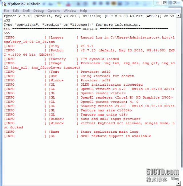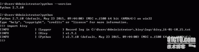 注:这里只是kivy的运行环境,这样我就能直接在windows机器上直接调试了,怎么将代码编译成APK文件我们会在后面讲到。