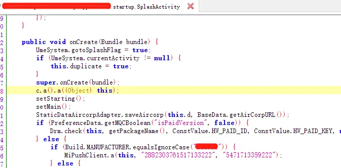找到主Activity后可以直接从oncreate方法开始阅读,当分析多了之后会发现现在很多APP的主Activity基本上都是名称为SplashActivity、BaseActivity等等。