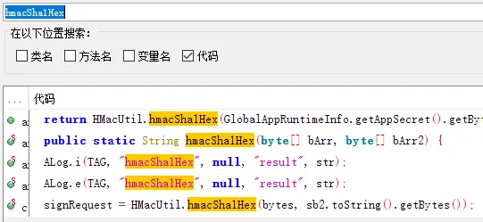 下图就是某金融类APP的日志信息,大概的关键字段有hmacSha1Hex以及URL内容。