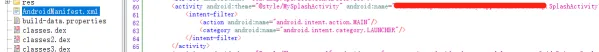 代码的入口Activity直接可以从AndroidManifest.xml中去找,主Activity的标识都非常明显,即