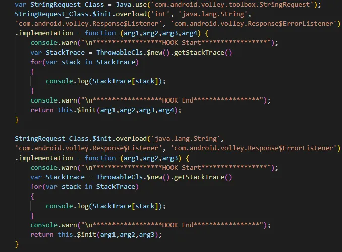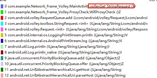 根据我的经验,现在用的比较多的网络框架有Volley、okhttp、Retrofit、HttpUrlConnection,在数据请求中每个框架方法都有特定的方法最后被调用,所以我们打印这些特定方法的堆栈,以发现应用层的数据请求方法。