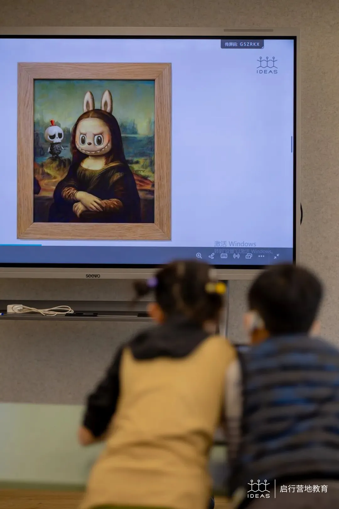 “和AI对话”:通过“提示词训练”,孩子们学习如何清晰、准确地表达自己的想法,用自然语言向AI下达指令,成功生成世界名画;难度升级的进阶任务,孩子们尝试将经典艺术与潮流玩具形象融合,锻炼精准表达,发挥创意思维;