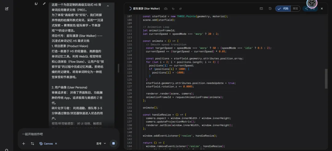 在 Gemini 3.0 的加持下,想象力本身就是生产力,一个好点子无需安装、调试、报错等繁琐步骤。