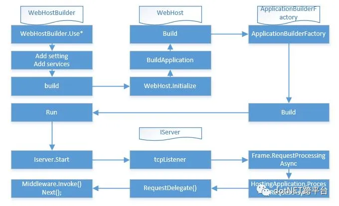 }WebHostBuilder看名字也知道是为了构建WebHost而存在的。在构建WebHost的路上他都做了这些:如加载配置,注册服务,配置功能等。
