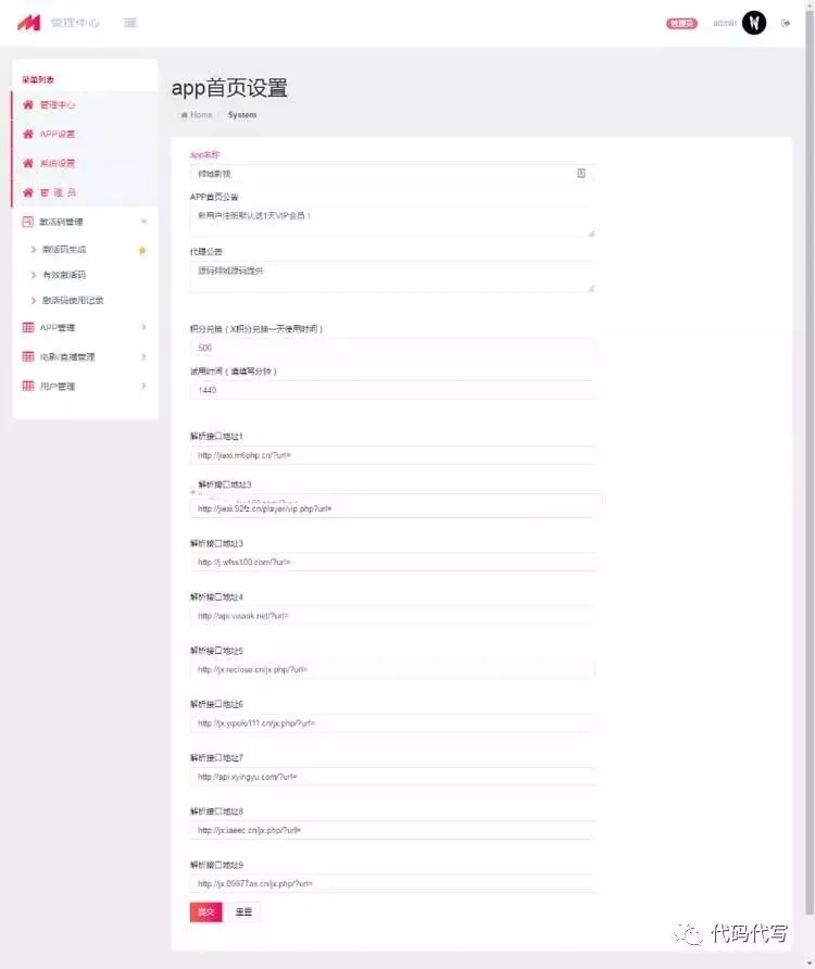 1.app首页的轮播图和各大视频网站以及首页的文字和下方广告都可以在后台添加/删除3.这个页面所有的轮播和小图标都可以在后台添加/删除。4.去除观看时候的各种弹窗,由原来的右上角播放改为直接覆盖官方播放器。5.原版后台只可以添加5条解析地址,响应其他人要求现在修改为可以增加9条解析地址。