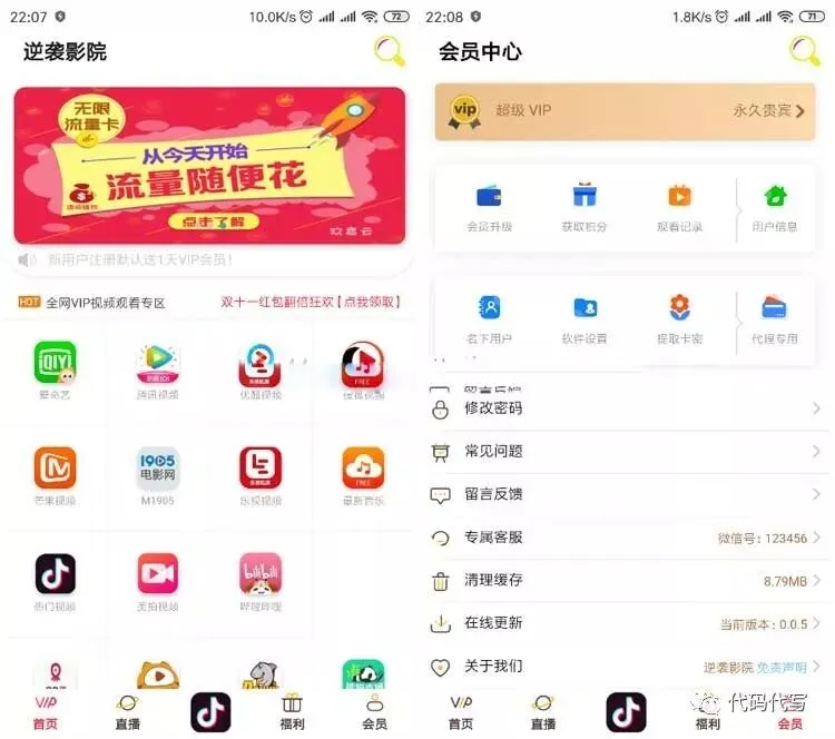 13.美化直播大厅,美化会员中心,美化会员过期弹窗,美化后台17.独家修复观影区图标为不限制,别人都是限制了12个不能多添加
