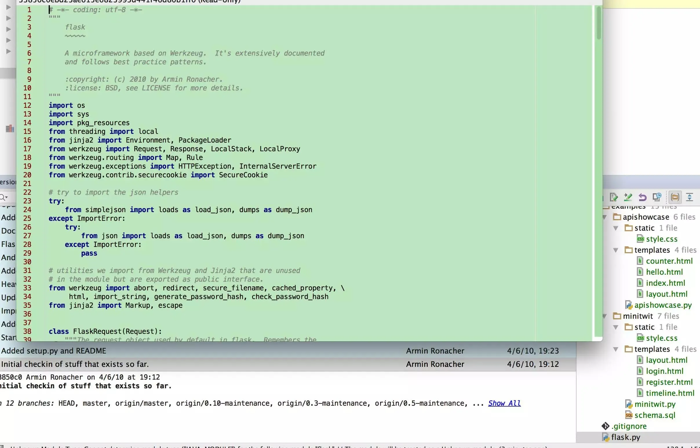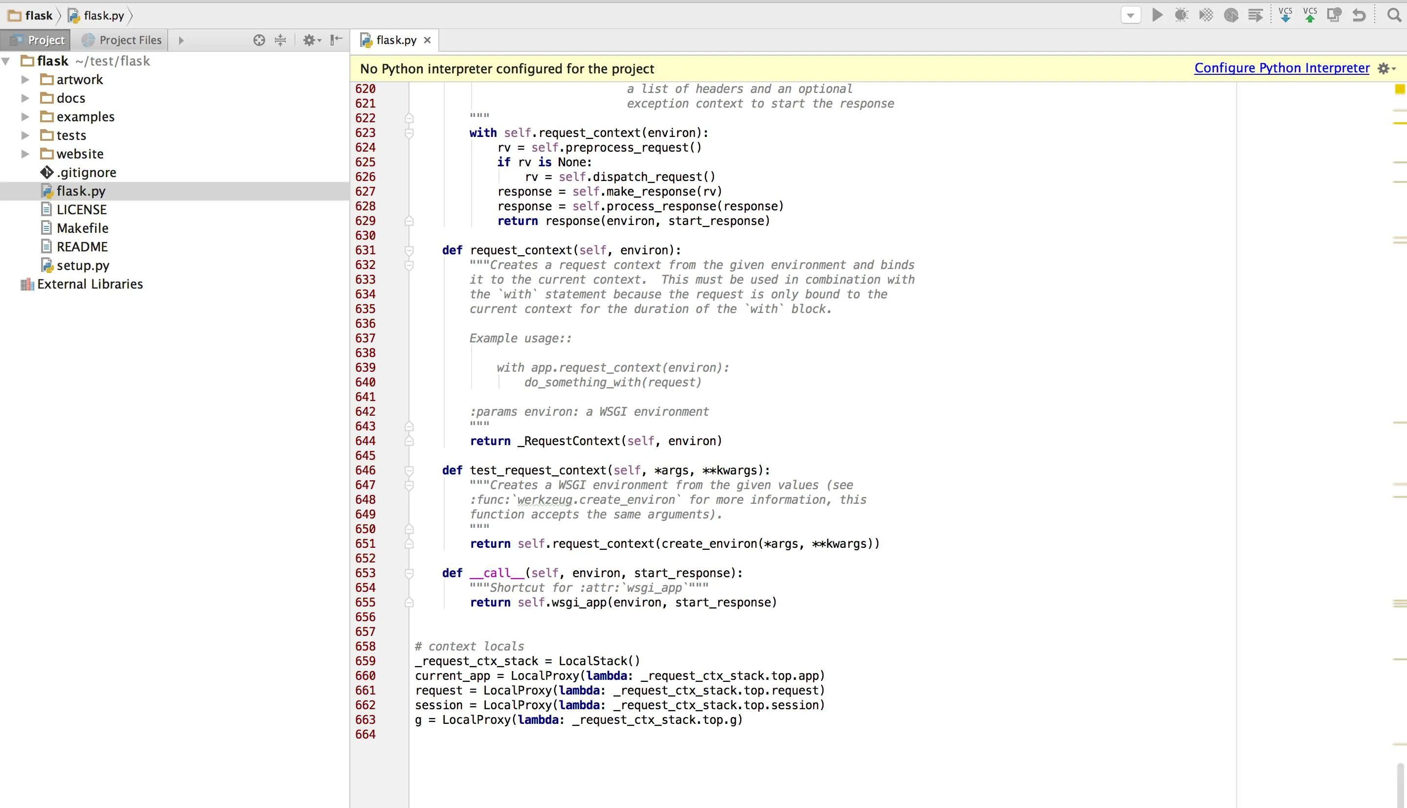 然后查看它的flask.py文件,只有简单的三百多行,并且还包含一系列注释。