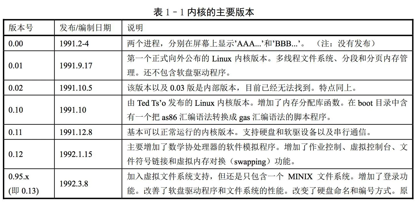 表格源自一本书叫《Linux内核0.11(0.95)完全注释》,简单地再介绍一下: