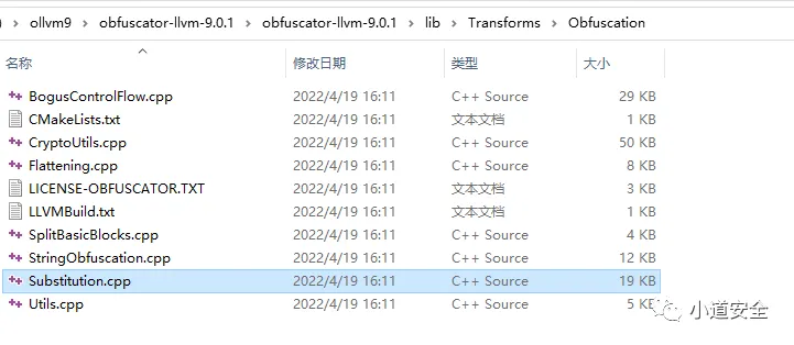 OLLVM和LLVM主要的功能的代码差异点如下图所示