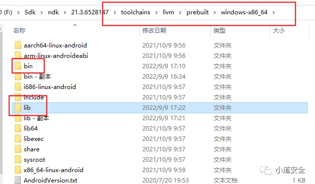 将vs编译生成后的bin和lib文件夹,替换到NDK中的llvm文件夹下面toolchains\llvm\prebuilt\windows-x86_64(替换之前切记做下备份,万一出问题了还能回滚)