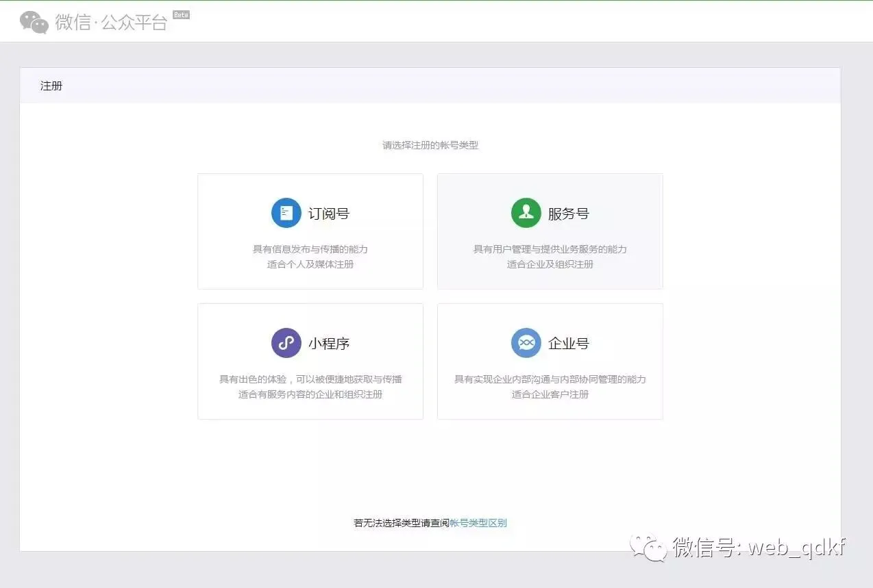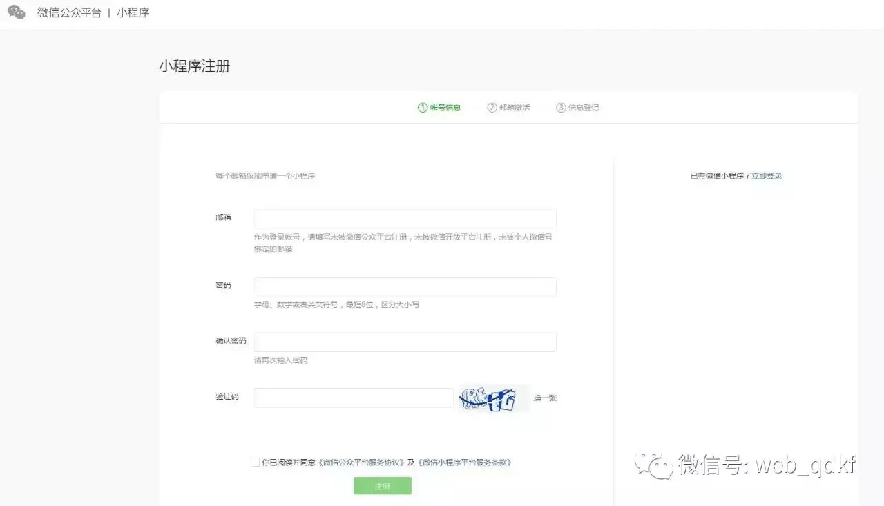 点击上图中的小程序,则可以到小程序注册界面,如下图: