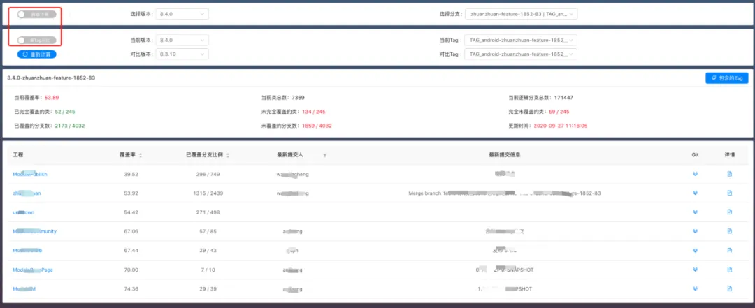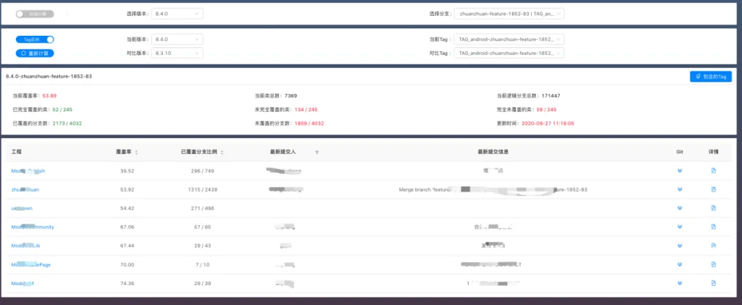 1、查看指定版本、分支的增量代码覆盖率数据 & 依赖组件工程的增量代码覆盖率数据