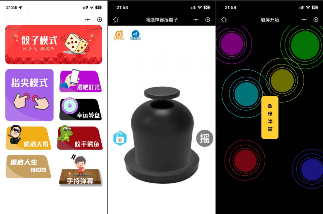 聚会娱乐类微信小程序,专为喝酒、聚会场景设计,集成了多种互动游戏和娱乐工具。