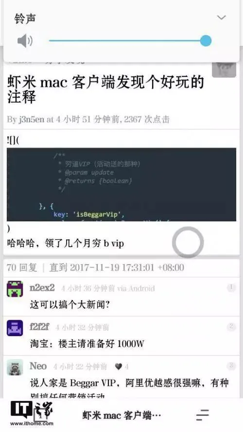 具体来讲,是V2EX网友发现了虾米音乐Mac版客户端中关于VIP会员代码的注释,上面的图片中出现了所谓的“穷逼VIP(活动送的那种)”,另外据IT之家进一步了解,其他VIP还有普通VIP和超级VIP......