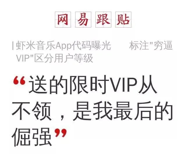 IT之家11月19日消息 作为业内巨头阿里巴巴下的虾米音乐面临着腾讯QQ音乐、网易云音乐的竞争,网友们也经常会看到虾米音乐推出的各种领取VIP优惠活动,这种VIP实际上跟常规的包月付费VIP在使用上应该没什么不同,但时间上有限制。今天一份虾米音乐代码曝光VIP的截图火了,网友们纷纷表示:“原来我领的是穷逼VIP”。