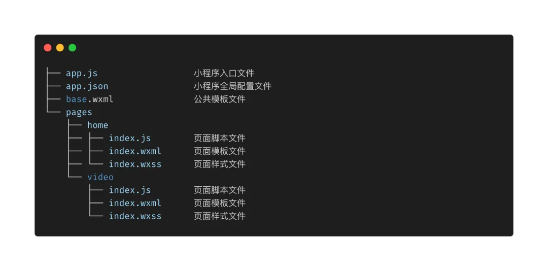 上文简单翻译过来的意思:Webpack Virtual Modules 是一个插件,它允许为用 Webpack 创建的 JavaScript 构建动态生成内存中的虚拟模块。创建虚拟模块时,也会创建模块文件名的所有父虚拟目录。它支持监视模式,这意味着任何对虚拟模块的写入都会被 webpack 看到,就像是存储在磁盘上的真实文件被修改了一样。在开始这一步之前我们需要先了解一下能让一个小程序跑起来的几个要素:1、必备的 app.json、app.js 以及页面文件。2、必须调用 App 来注册小程序、必须调用 Page 注册页面。