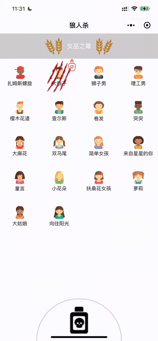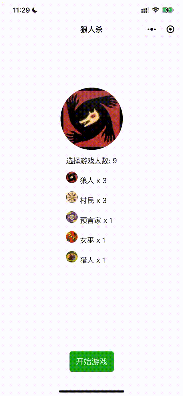 上面的效果是普通村民和狼人的