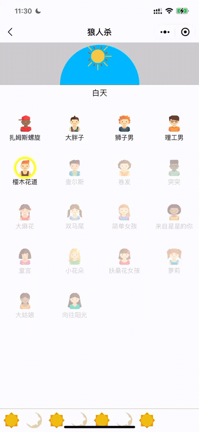 进入游戏后,有多个白天黑夜的转换环节,狼人可以在黑夜中淘汰选手