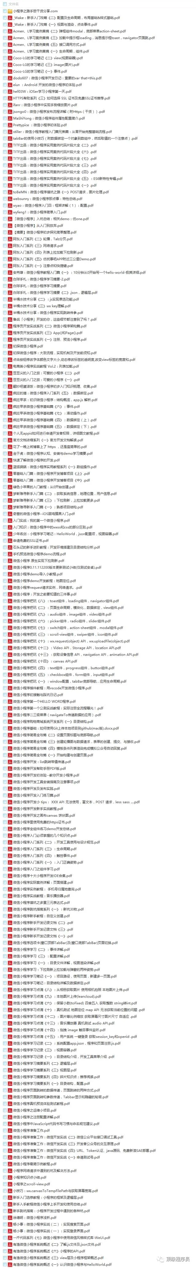 这是公众号 “顶级程序员”收集的各类代码、文本教程、视频教程,经过很长时间的积累,大概收集整理了500套小程序demo代码,200份文本教程,12套完整视频教程。
