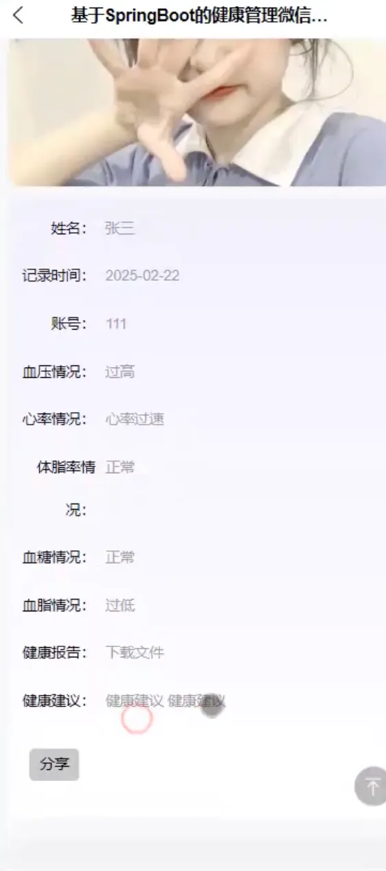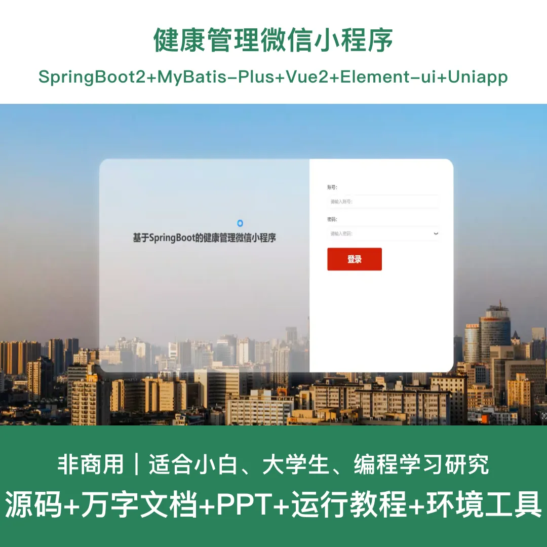 基于SpringBoot和uniapp的健康管理微信小程序,方便用户随时随地进行健康管理和咨询,提升健康管理质量和效率。