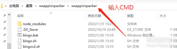 正式用到大神开发的【wxappUnpacker】了。下面的操作,都是在cmd命令窗口中操作的,需要强调的是,必须在wxappUnpacker路径里才可以,简易方法是,直接在【wxappUnpacker】文件夹的地址栏里输入cmd即可。