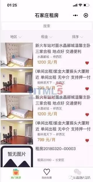 这个本来是给朋友帮忙做的一个小程序,但最终因为没有企业资质,(租房类的小程序必须要有企业资质的),所以没办法发布,想着就把代码放出来吧,水平肯定不咋滴,代码质量也不算太高,但里面用到的一些搜索的组件,地图添加标注,以及收藏等操作的实现代码,还是有一些参考价值的,大致的界面如下: