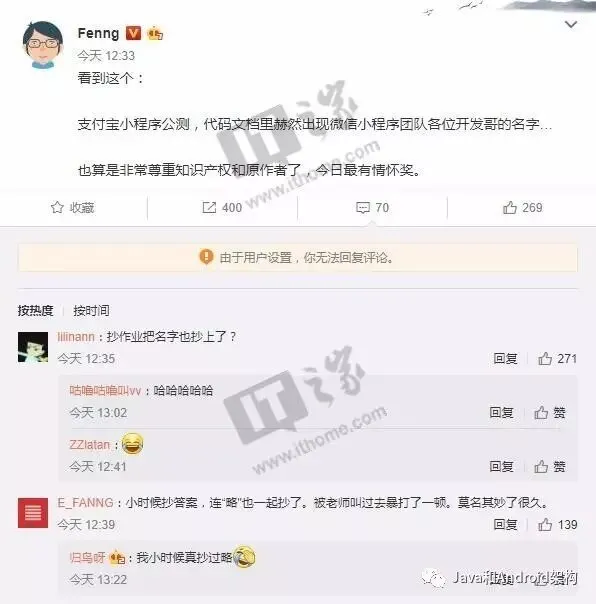 不过,支付宝小程序刚刚开启公测,就有网友爆料称,支付宝小程序代码文档里赫然出现了微信小程序团队各位开发哥的名字……