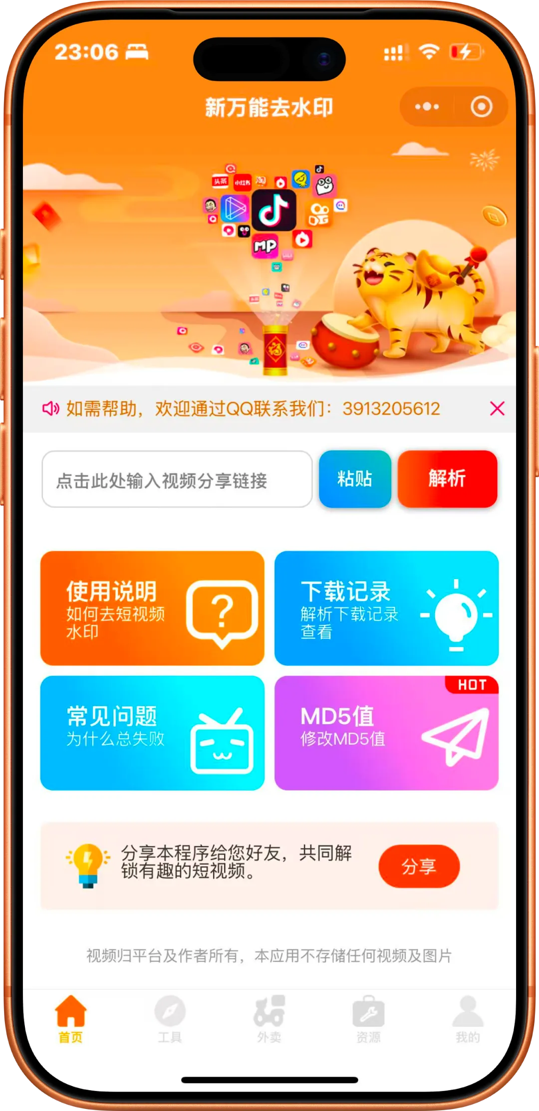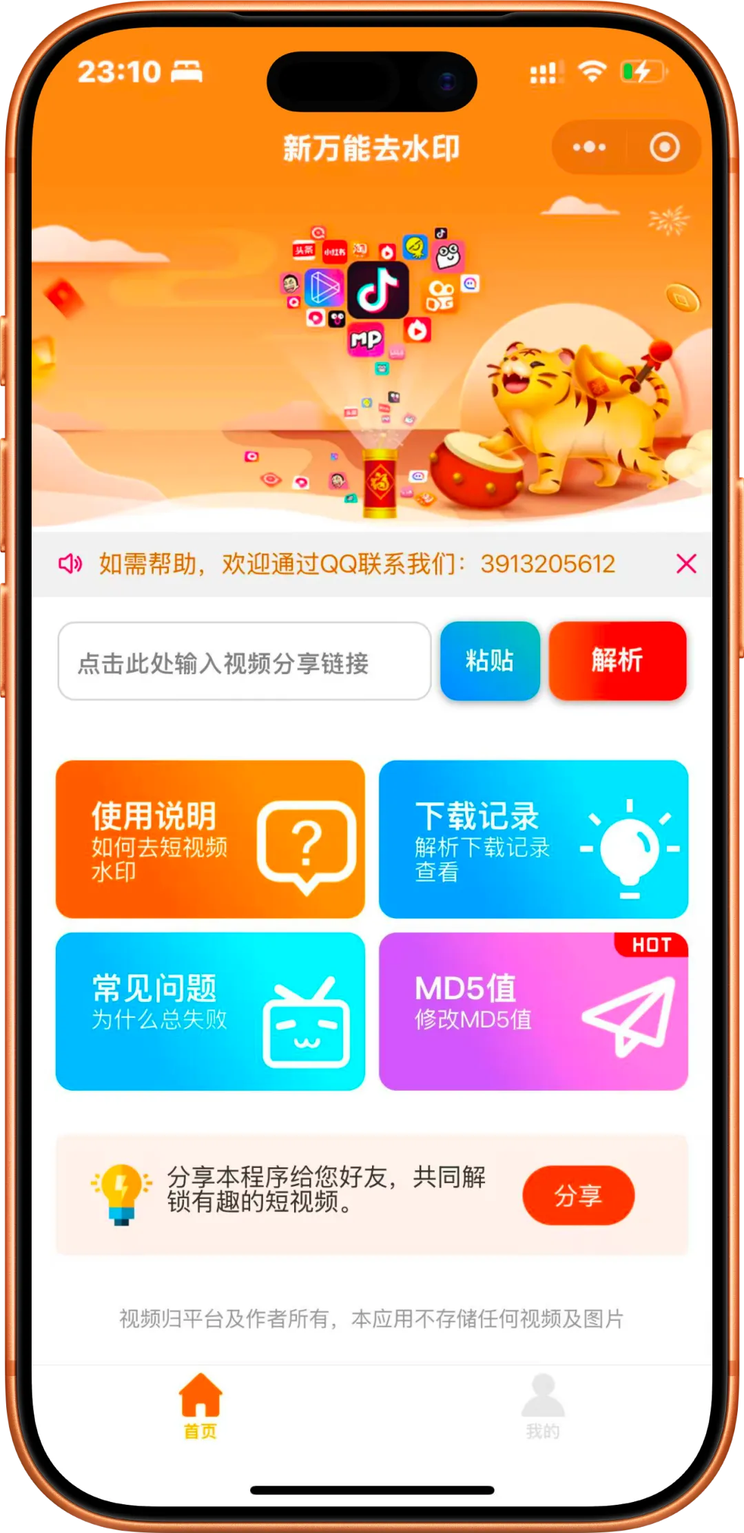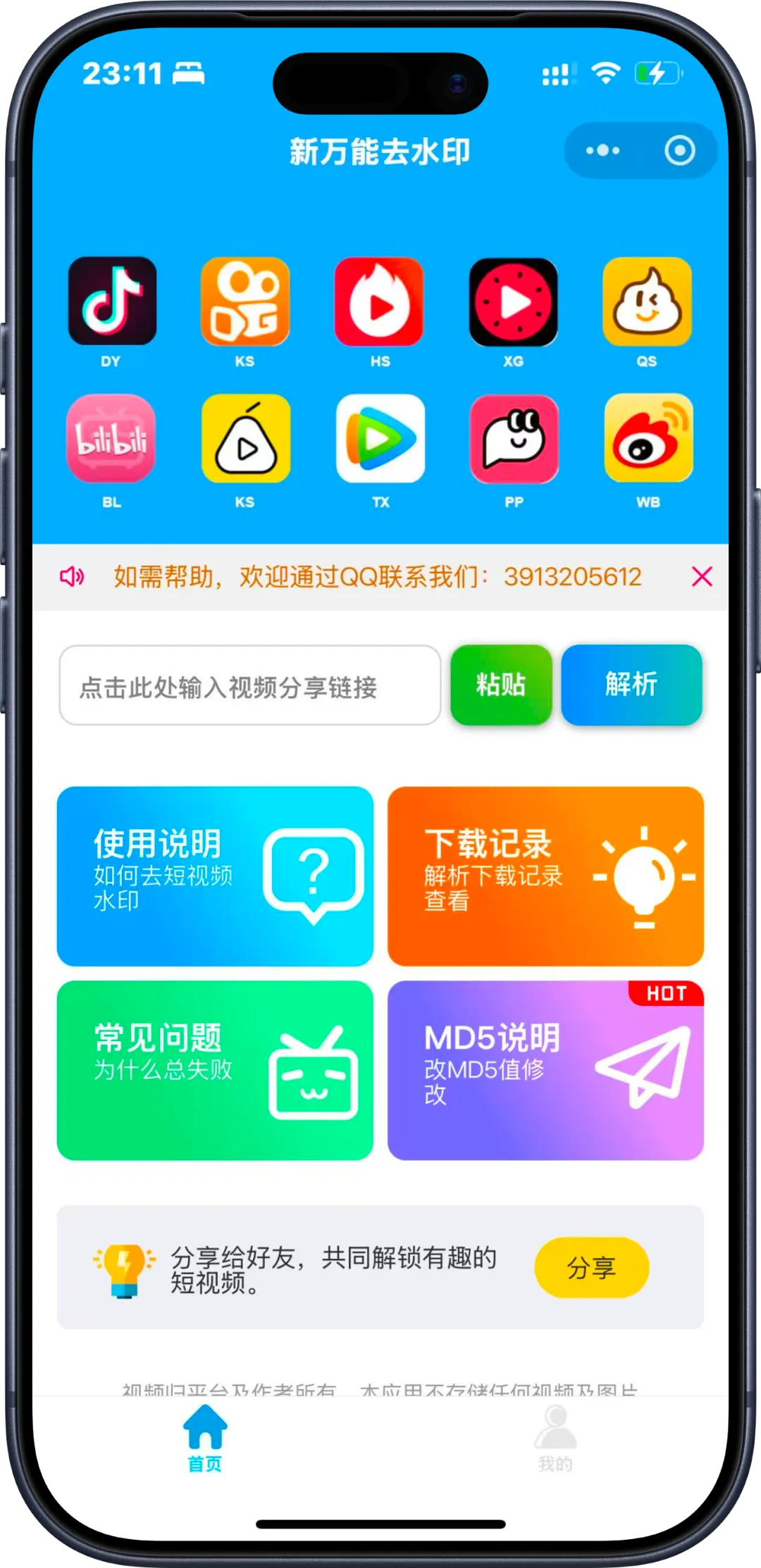 本项目源码基于社区内广泛流传的 原陆大湿开源去水印小程序项目(原版作者:陆大湿) 进行深度修改接口和功能增强。仅供学习研究!