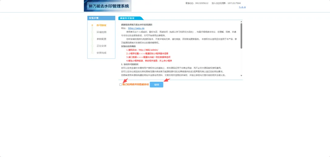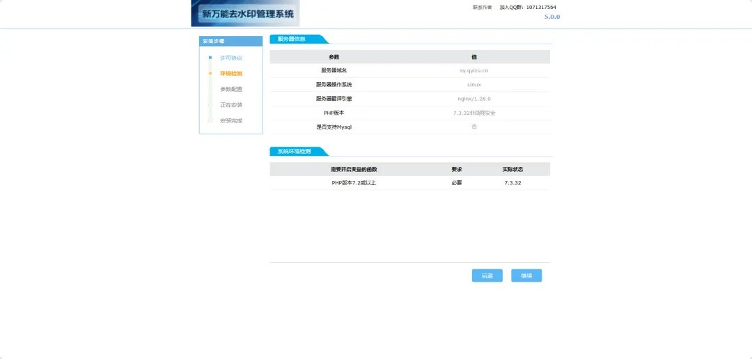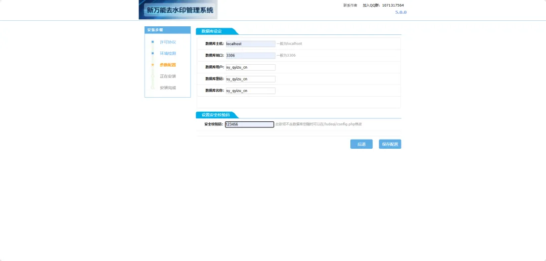检测页面如果没问题就继续安装,以下就是数据库信息,自己填写下对应信息,有个安全码,这个自己设置一个,一会登录的时候要用。