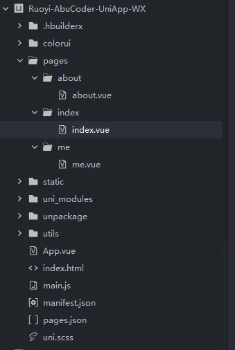 - 把UniApp代码Ruoyi-AbuCoder-UniApp-WX导入到HbuilderX