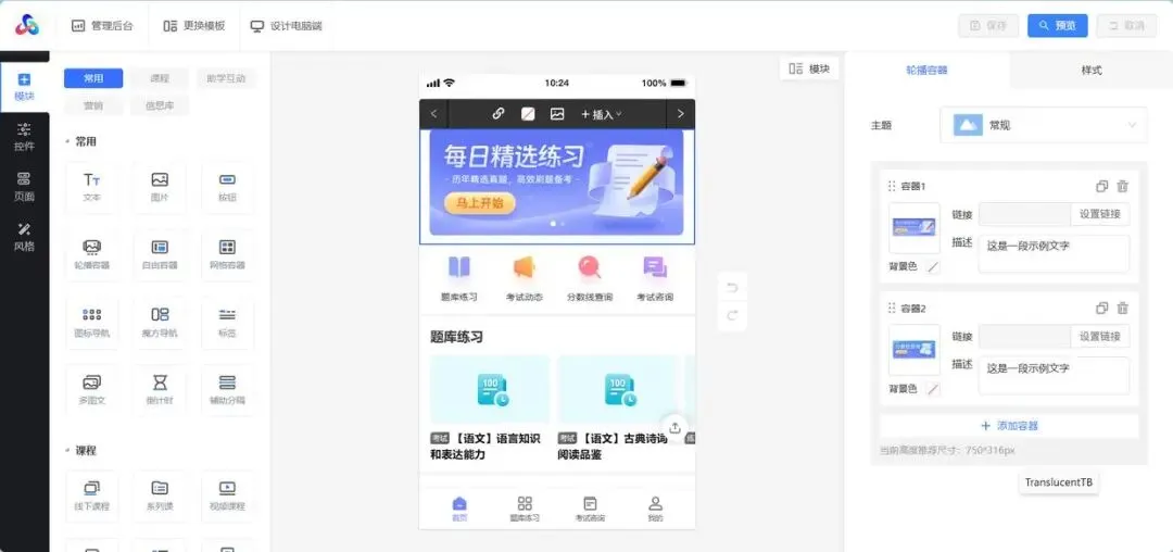 懒人福音:按行业挑模板(职业考试、少儿答题、消防建筑都有),一键套用!图片、文字、题库样式随便改,改完点保存,瞬间生效~