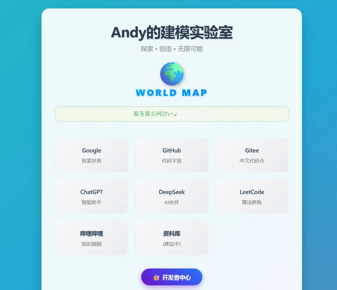 <!DOCTYPE html><htmllang="zh-CN"><head> <metacharset="UTF-8"> <metaname="viewport"content="width=device-width, initial-scale=1.0"> <title>Andy的建模实验室</title> <style> * { margin: 0; padding: 0; box-sizing: border-box; font-family: 'Segoe UI', 'Microsoft YaHei', sans-serif; } /* 动态渐变背景 */ body { background: linear-gradient(-45deg, #ee7752, #e73c7e, #23a6d5, #23d5ab); background-size: 400% 400%; animation: gradientBG 15s ease infinite; min-height: 100vh; padding: 20px; color: #333; } @keyframes gradientBG { 0% { background-position: 0% 50%; } 50% { background-position: 100% 50%; } 100% { background-position: 0% 50%; } } .container { max-width: 800px; margin: 40px auto; padding: 40px; background: rgba(255, 255, 255, 0.92); border-radius: 24px; box-shadow: 0 15px 35px rgba(0, 0, 0, 0.2); backdrop-filter: blur(10px); border: 1px solid rgba(255, 255, 255, 0.3); } header { text-align: center; margin-bottom: 50px; } .world-map-art { margin: 25px 0; text-align: center; } .world-icon { font-size: 4.5em; display: block; line-height: 1; filter: drop-shadow(3px 3px 5px rgba(0, 0, 0, 0.3)); } .map-text { display: block; font-size: 1.8em; font-weight: 800; letter-spacing: 4px; background: linear-gradient(90deg, #00c6ff, #0072ff); -webkit-background-clip: text; background-clip: text; color: transparent; margin-top: 5px; text-shadow: 2px 2px 4px rgba(0, 114, 255, 0.2); } h1 { color: #2c3e50; margin-bottom: 10px; font-size: 2.8em; font-weight: 700; /* 加粗 */ letter-spacing: -0.5px; /* 紧凑感 */ text-shadow: 2px 2px 4px rgba(0, 0, 0, 0.1); /* 轻微阴影 */ } .subtitle { color: #7f8c8d; font-size: 1.2em; margin-bottom: 25px; } .ip-address { margin-top: 20px; padding: 12px; background: rgba(241, 248, 233, 0.9); border-radius: 12px; font-family: monospace; color: #388e3c; font-size: 1.1em; border: 1px dashed #388e3c; } .links { display: grid; grid-template-columns: repeat(auto-fill, minmax(200px, 1fr)); gap: 20px; } .link-card { background: linear-gradient(135deg, #f8f9fa 0%, #e9ecef 100%); padding: 25px 20px; border-radius: 16px; text-align: center; transition: all 0.4s cubic-bezier(0.175, 0.885, 0.32, 1.275); border: 2px solid transparent; position: relative; overflow: hidden; } .link-card::before { content: ''; position: absolute; top: 0; left: -100%; width: 100%; height: 100%; background: linear-gradient(90deg, transparent, rgba(255,255,255,0.6), transparent); transition: left 0.7s; } .link-card:hover::before { left: 100%; } .link-card:hover { transform: translateY(-8px) scale(1.03); box-shadow: 0 15px 25px rgba(0, 0, 0, 0.15); border-color: #2196f3; background: linear-gradient(135deg, #e3f2fd 0%, #bbdefb 100%); } .link-card a { text-decoration: none; color: #2c3e50; font-weight: 600; display: block; font-size: 1.1em; position: relative; z-index: 1; } .link-card .desc { color: #666; font-size: 0.95em; margin-top: 10px; position: relative; z-index: 1; } footer { margin-top: 50px; text-align: center; color: #5a6c7d; font-size: 0.95em; line-height: 1.6; padding-top: 20px; border-top: 1px solid rgba(0, 0, 0, 0.1); } /* 登录入口按钮 */ .login-entry { text-align: center; margin-top: 40px; } .login-btn { display: inline-block; padding: 14px 35px; background: linear-gradient(45deg, #6a11cb, #2575fc); color: white; text-decoration: none; border-radius: 50px; font-weight: 600; font-size: 1.1em; transition: all 0.3s ease; box-shadow: 0 5px 15px rgba(106, 17, 203, 0.4); border: none; cursor: pointer; } .login-btn:hover { transform: translateY(-3px); box-shadow: 0 8px 20px rgba(106, 17, 203, 0.6); background: linear-gradient(45deg, #2575fc, #6a11cb); } </style></head><body> <divclass="container"> <header> <h1>Andy的建模实验室</h1> <pclass="subtitle">探索 • 创造 • 无限可能</p> <!-- 世界地图艺术字 --> <divclass="world-map-art"> <spanclass="world-icon">🌍</span> <spanclass="map-text">WORLD MAP</span> </div> <divclass="ip-address">服务器公网IP:99.99.128.188</div> </header> <sectionclass="links"> <divclass="link-card"><ahref="https://www.google.com"target="_blank">Google</a><divclass="desc">探索世界</div></div> <divclass="link-card"><ahref="https://github.com"target="_blank">GitHub</a><divclass="desc">代码宇宙</div></div> <divclass="link-card"><ahref="https://gitee.com"target="_blank">Gitee</a><divclass="desc">中文代码仓</div></div> <divclass="link-card"><ahref="https://chat.openai.com"target="_blank">ChatGPT</a><divclass="desc">智能助手</div></div> <divclass="link-card"><ahref="https://chat.deepseek.com"target="_blank">DeepSeek</a><divclass="desc">AI伙伴</div></div> <divclass="link-card"><ahref="https://leetcode.cn"target="_blank">LeetCode</a><divclass="desc">算法修炼</div></div> <divclass="link-card"><ahref="https://www.bilibili.com"target="_blank">哔哩哔哩</a><divclass="desc">知识视频</div></div> <divclass="link-card"><ahref="/library.html"target="_blank">资料库</a><divclass="desc">(建设中)</div></div> </section> <divclass="login-entry"> <ahref="/login.php"class="login-btn">🔐 开发者中心</a> </div> <footer> <p>© 2025 建模实验室 | 由 Apache 与 Ubuntu 驱动</p> <p>动态背景 | 卡片悬停光影</p> <p>页面有效期至 2026年12月25日</p> </footer> </div></body></html>