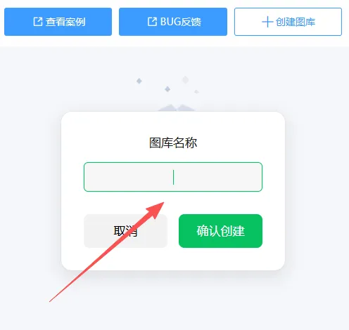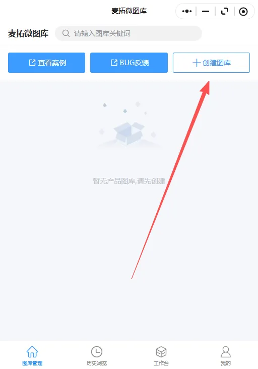第一步:在平台主页找到图库创建入口,具体位置可参考下图,点击该入口即可启动图库创建流程。输入产品展示小程序的名字