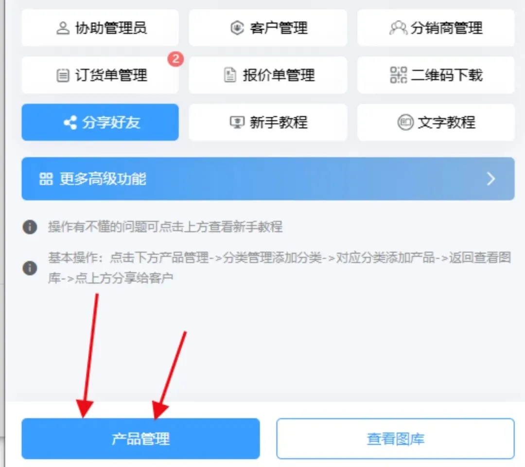 第二步:创建成功!下一步:点击左下角产品管理,快速上传产品图,即刻开启产品展示流程。